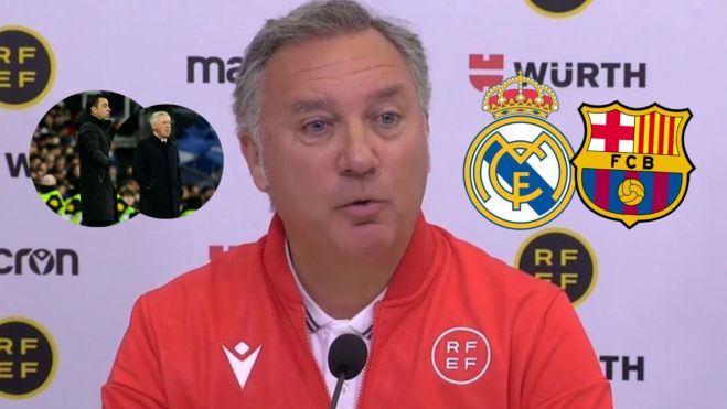 Cantalejo ha aprovechado esta rueda de prensa para atizar a Carlo Ancelotti, Xavi Hernández y Diego Pablo Simeone, y también para criticar los vídeos lanzados por RMTV.