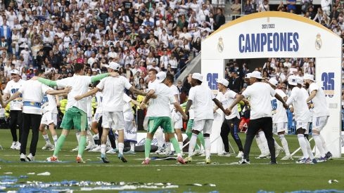 Con un Bernabéu lleno hasta la bandera, el equipo blanco dio la vuelta de honor que merecía la victoria definitiva para el campeonato. Todos los jugadores se vistieron con la camiseta y la gorra de campeones, hasta Carlo Ancelotti lució de esta guisa tras ser manteado por sus jugadores. Con este título el entrenador italiano es el primero de la historia en lograr ser campeón de las cinco grandes ligas.