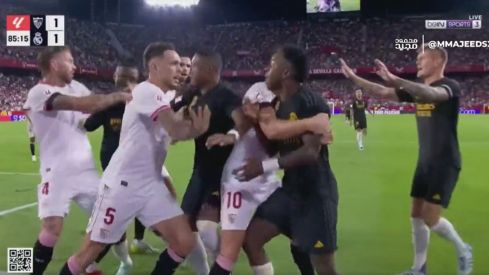 Una tangana que jamás debió haberse provocado y en la que Vinicius solamente quería el balón para sacar de esquina. Pero, como siempre, los jugadores del Sevilla estuvieron más pendientes de lo que quería el público que de jugar el partido.