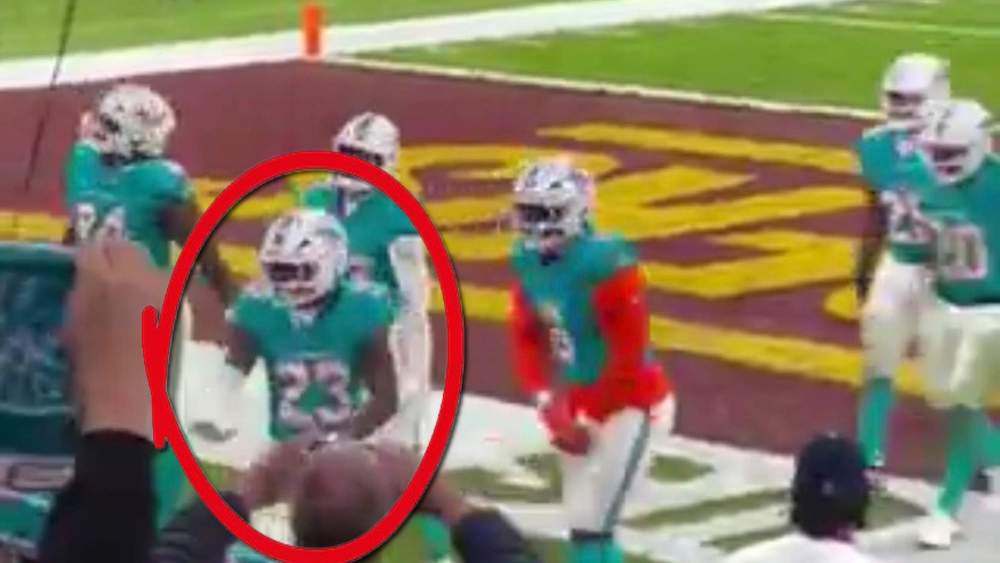 Jack Jones, de los Miami Dolphins gritó el típico "SIUUU" de Ronaldo, luego hizo el gesto de 'calma, calma' y terminó con la celebración de Mbappé cruzando los brazos.