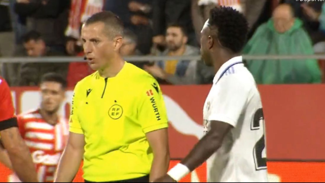 Veíamos al trencilla en varias ocasiones ver cómo se dirigió a Santi Bueno a pedirle que se calmara y no se picara con Vinicius. Las cámaras de Movistar le delataban y ahí quedará para siempre. Su “desprotección” hacia el brasileño es real.