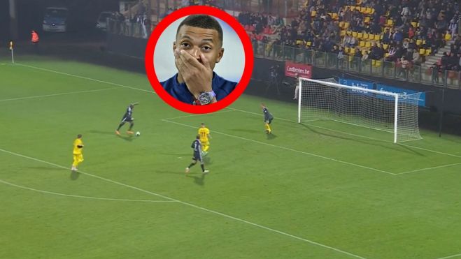 La pelota llegaba al jugador belga, qué de tacón, se la dejó al hueco para que el padre de Kylian Mbappé quedara completamente solo delante del portero. Pero lejos de hacer una definición sencilla, totalmente normal, lo que hizo fue emular a Ronaldo Nazario, que todos sabemos que cuando hacía un uno contra uno con el portero lo que hacía era amargarle, engañarle o regatearle y en este caso, el padre de Mbappé lo que hizo fue hacer un amago de que le iba a chutar y, en el momento que el portero estaba en el suelo, de manera muy suave, meter el balón por el centro de la portería.