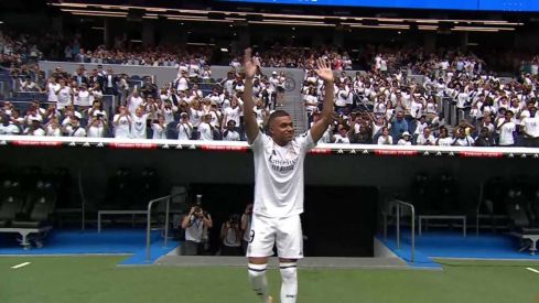No puede ocultar Mbappé que está disfrutando. En el rato que ha durado su paseo desde que ha salido por el túnel de vestuarios hasta el escenario, además de unas cuantas reverencias a la afición, no paraba de sonreír, de reírse alucinando con lo que estaba viviendo, y sobre todo siendo feliz como hacía mucho tiempo que no se le veía.