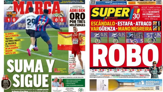 El medio valencianista no deja lugar a dudas; "Robo", titula, en clara referencia a la acción que pudo haber sido penalti y que ni el VAR actuó. "Escándalo, estafa, atraco, vargüenza, mano negreira", se lee en la portada.