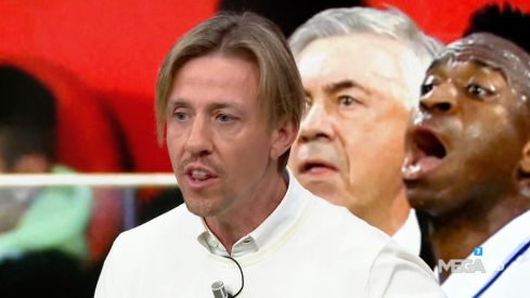 "Que no es la primera vez. ¡Basta ya! Que los árbitros lo ven cada semana y no son capaces ninguno de avisar. Y no es la primera vez que le pasa esto a Vinicius. Y ninguno del VAR avisa para que vaya a ver la entrada", aclamaba Guti, aludiendo la brutal entrada que sufrió Vinicius en el tobillo en la primera parte.