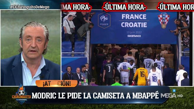 Josep Pedrerol fue muy tajante con la imagen del intercambio de camiseta entre Mbappé a Modric. El director de El Chiringuito no podía creer que Modric pidiera la camiseta a Mbappé después de que el francés "se ria de todo el madridismo", decía Josep. Este tipo de actitudes le parecen terribles y da a entender que Modric no entiende el dolor de los aficionados tras el no de Mbappé a su futuro como merengue.